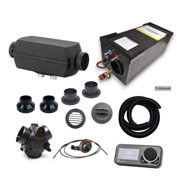 Contenu du kit chauffage diesel AUTOTERM + chauffe-eau PUNDMANN 9L
