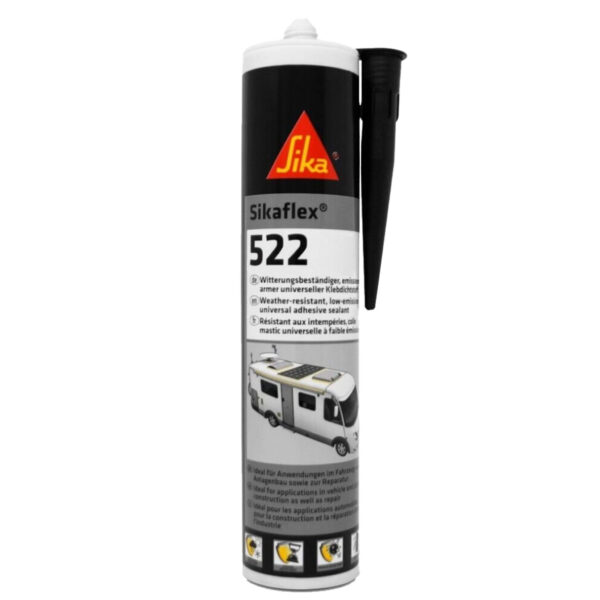 Cartouche de Sikaflex 522 Noir, utilisable à l’intérieur et à l’extérieur pour l’aménagement de votre fourgon aménagé.