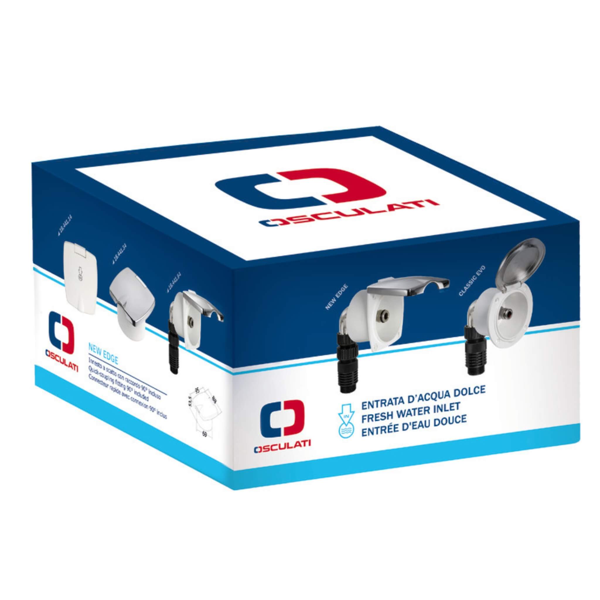 - Dimensions et raccordements de l’OSCULATI Entrée d’eau Classic Evo Blanc