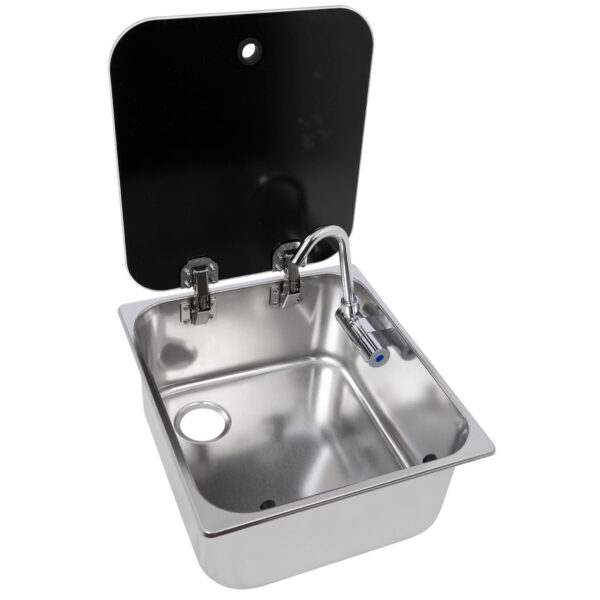 Robinet rabattable intégré à l’évier inox à encaster + évier avec couvercle 352 x 322 mm NAVY LOAD