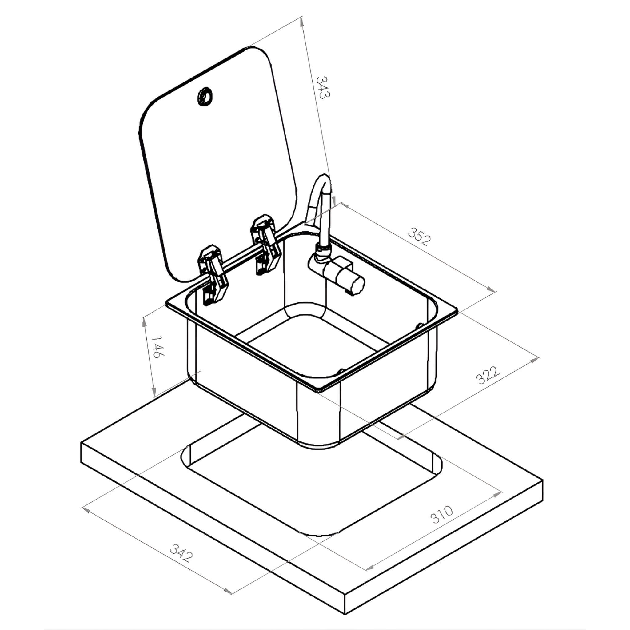 Caractéristiques techniques du NAYY LOAD Evier inox à couvercle | 352 x 322 mm